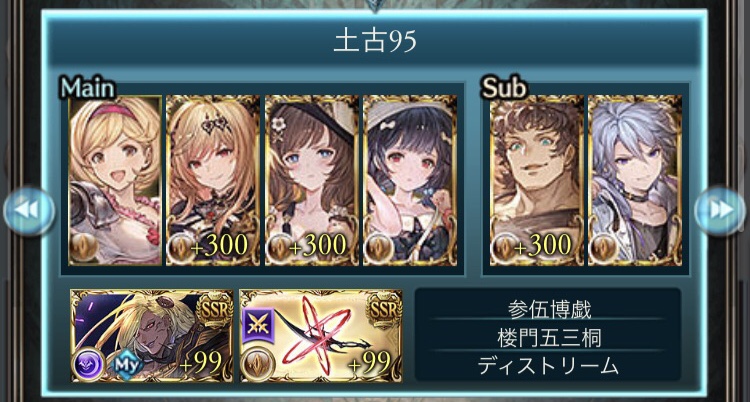 今回も基本的には[騎空艇効果あり、炉あり、団バフなし]です。スタメンキャラ、武器、召喚石にはプラスが振ってある前提です。