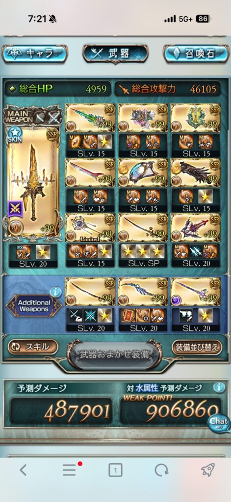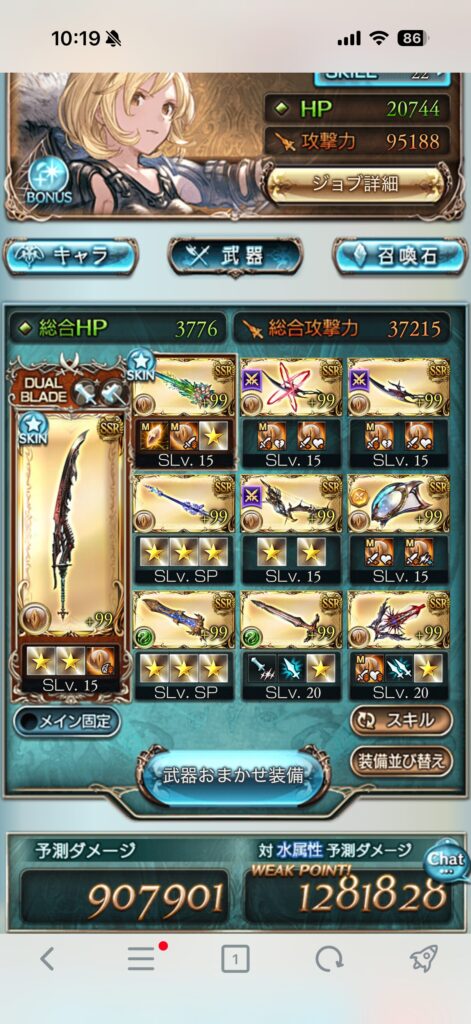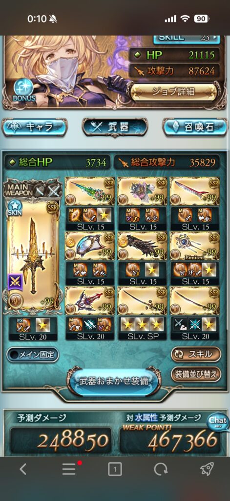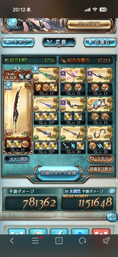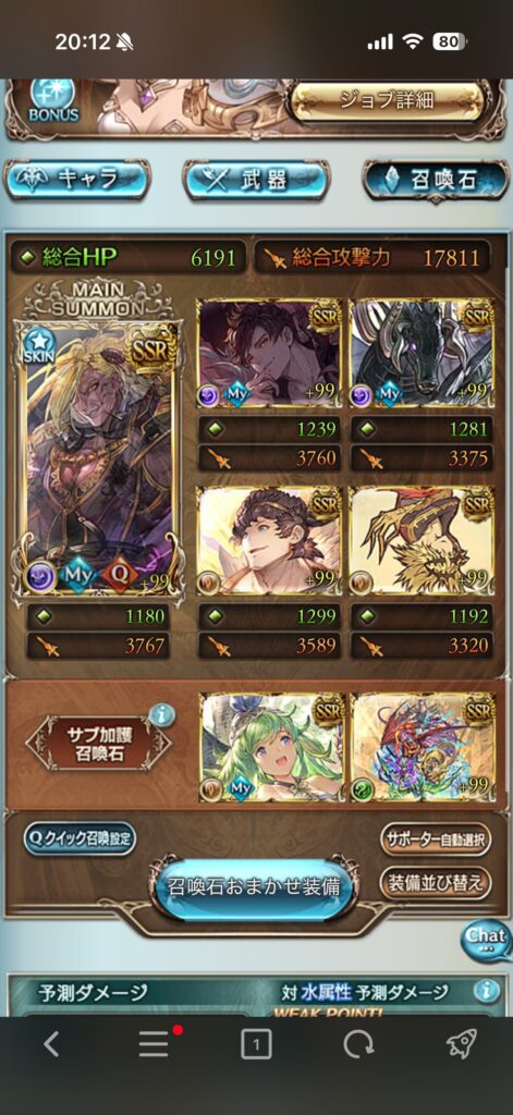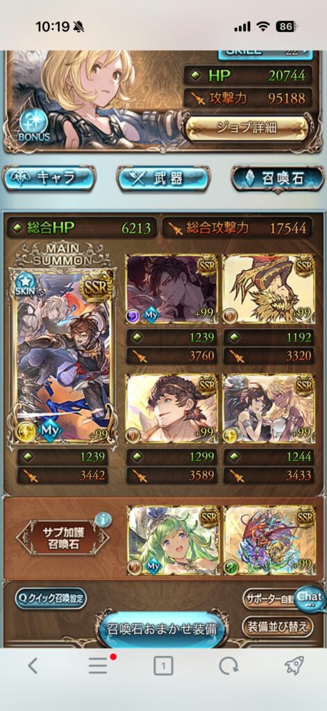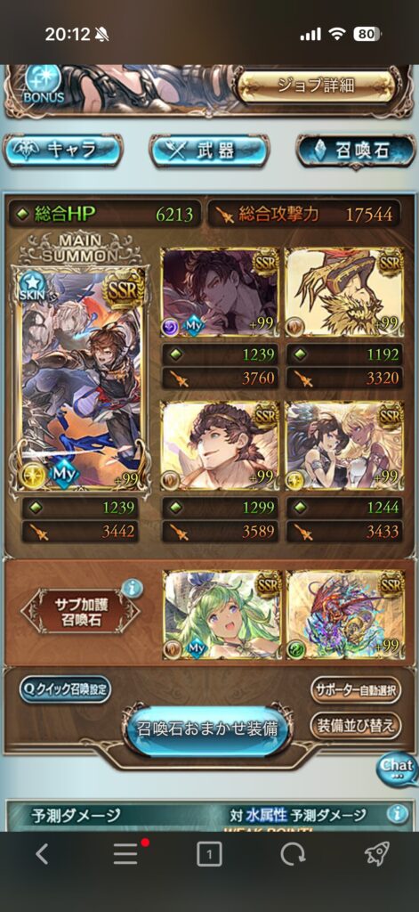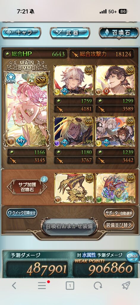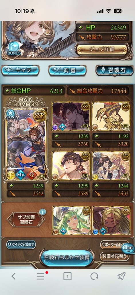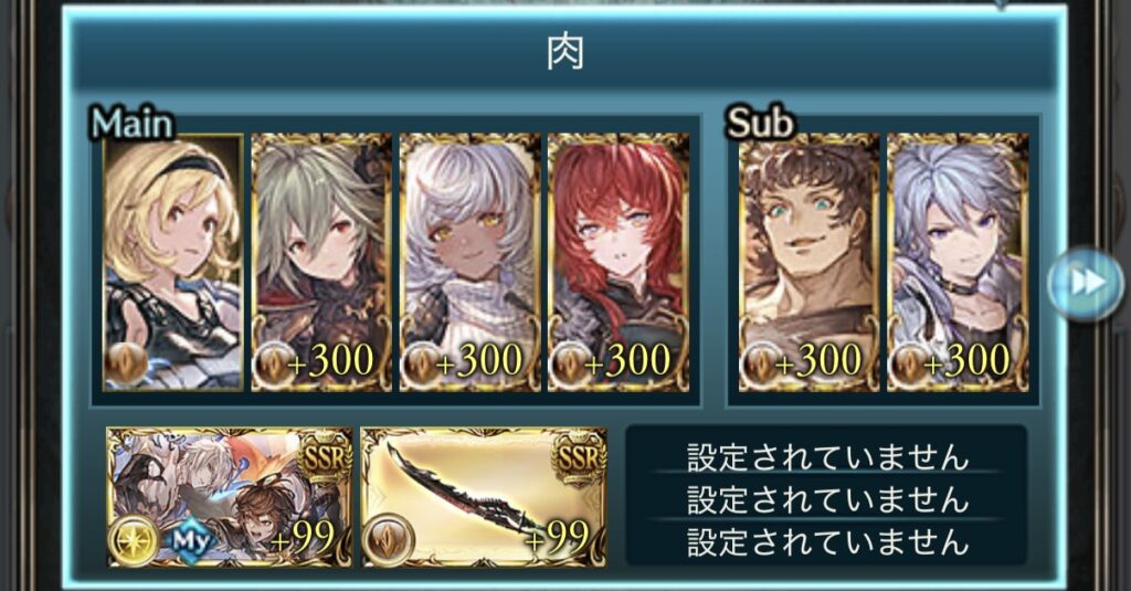 こちらも、基本的には[騎空艇効果あり、炉あり、団バフなし]です。スタメンキャラ、武器、召喚石にはプラスが振ってある前提です。