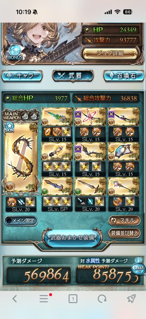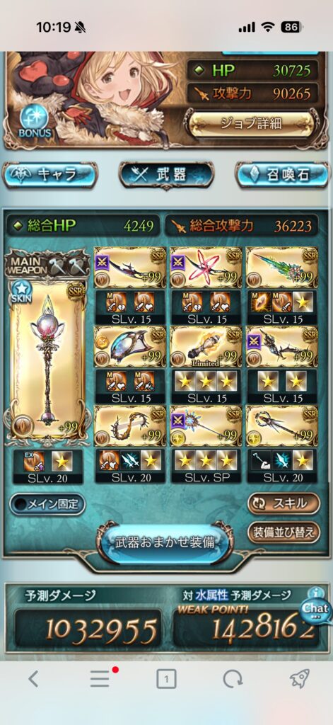 ブローディア:攻撃+2280、奥義ダメ上限+10.2%〇武器 ※画像でわかりにくい部分を記載