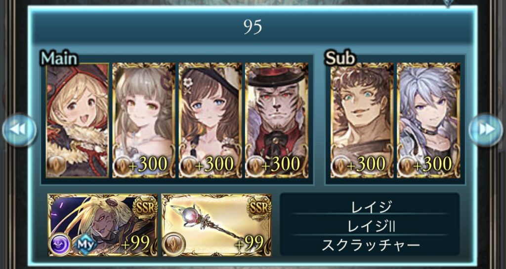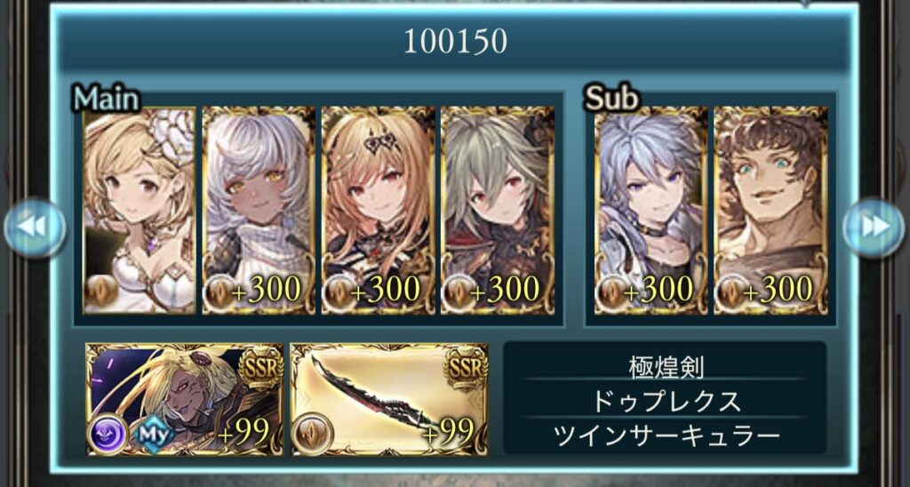 100HL、150HLは同じ編成で周回していました。これは自分で編成を調整したような気がします。