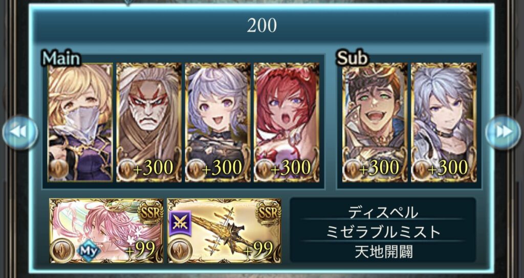 今回も基本的には[騎空艇効果あり、炉あり、団バフなし]です。スタメンキャラ、武器、召喚石にはプラスが振ってある前提です。