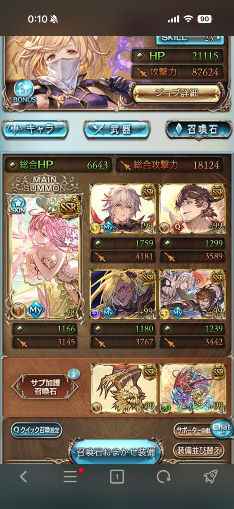 90HLは上記編成で周回していました。これは動画か何かの編成を参考にしたんだっけかな?